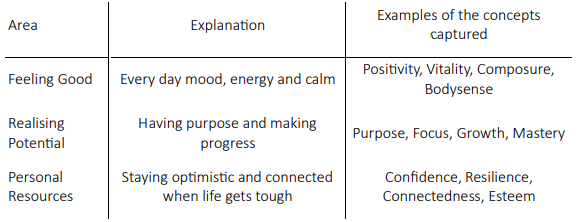 Each personal pillar is assessed through three focused dimensions (further granularity is